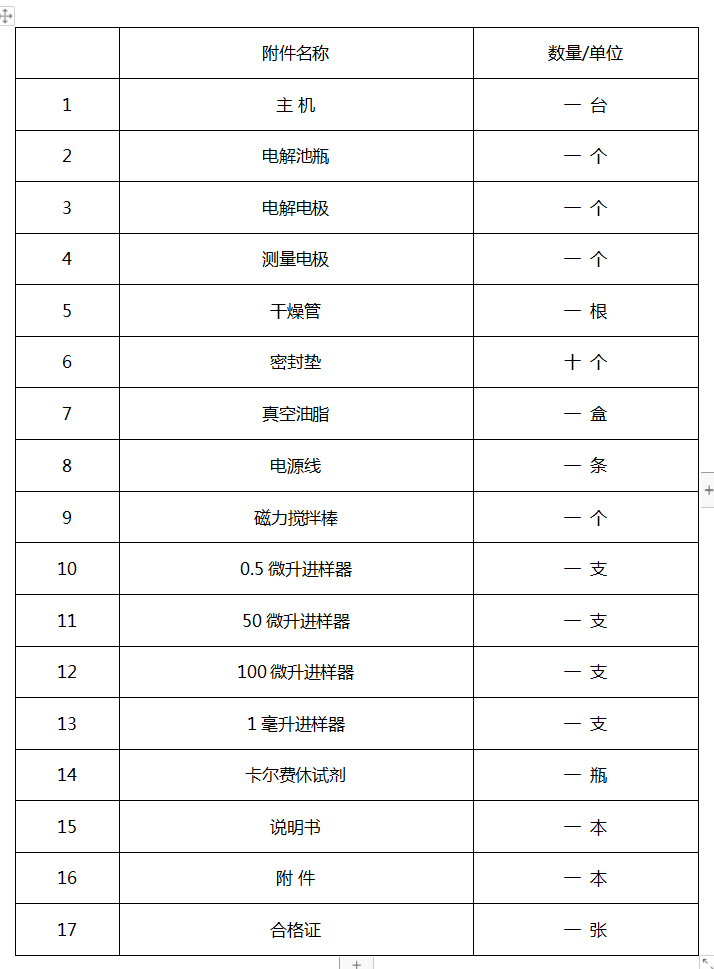 微量水分測定儀配置:
